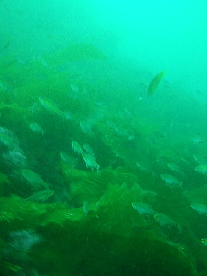 が、今日は透明度悪いし寒いし、暗いし、海草が多いのだ。
