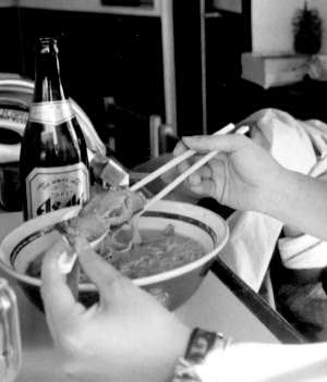 | 印旛沼から離れるとようやく向かい風もおさまって快適、快適。お天気よいし、なんか楽しいぞ〜。周りに見える里山も走るとおもしろそう。帰ったらチェックしなきゃ。 そうこうするうちにお昼。丹羽氏お奨めのチャーシューの美味いラーメン屋に立ち寄る。確かにチャーシューがトロっとしていてとても美味い。こりゃ、ビールにあうわ〜。 |