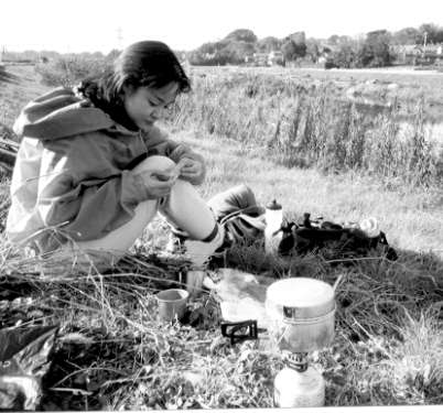 風景が渓谷風から、畑の広がるのんびりした風景に変わったところで休憩。コーヒーを沸かして飲む。そして本日の仕込みその1、ケーキ! だって今日はクリスマスイブだもん!犬くん何故かゲンナリした顔をする。あれ?タルトキライ? そうか君は仏教徒だったか。 |