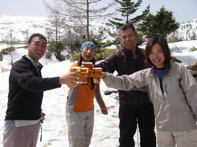 ![]() 山小屋で生ビールをグラスで飲めるなんて夢のよう・・・ |