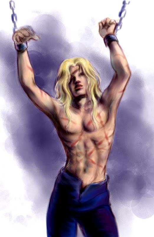 なんかヘビメタのにいちゃんがプロモビデオでリンチシーンとっている といった趣きになってしまいました。 某サイトさんでの小説を読んで、描きたいと思ったのはこんなじゃなかったのに(爆)。 どうしてこう業の深いのが初描きなのか。 単に私の趣味が悪いせいか。 しかし、これによってちょっとペイン太の自分に合った使い方が掴めたような気がします。 油絵の手順かも。 下絵もなく地の色で形とってテキトーに影いれてだんだん細部に至る、って方法。 いや、油絵いじったこと無いから知らないですが。 私全部独学で試行錯誤してきただけだから本来の描き方ってわからないんよなぁ。 よって常に教えてくれる人募集中(切実に本気!) |