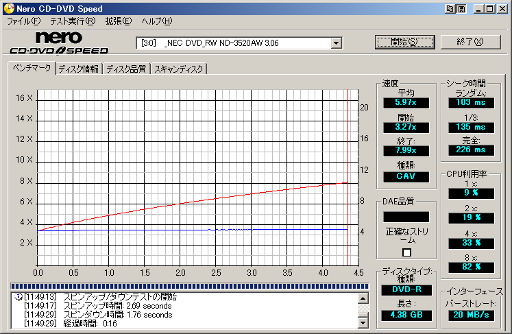 当然8倍速も問題なし。 書き込みテスト記録速度:16x