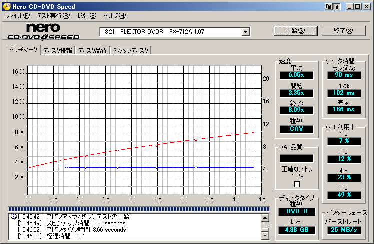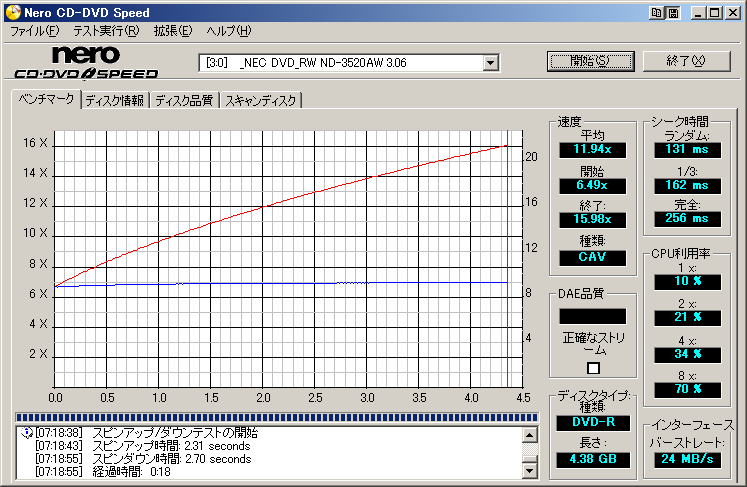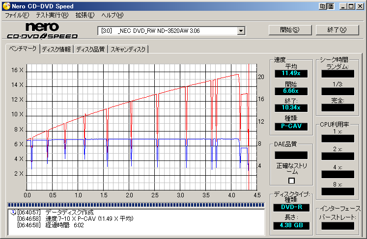 後半のうねりはドライブの仕様っぽいので、問題なし。 まとめPX-W4012TUと同じ「in-system ISD300A1」チップを採用したケースにもかかわらず、何故か16倍速記録できず。読み込みではほぼ16倍速出ているのだが・・・。(後日再テスト予定)
