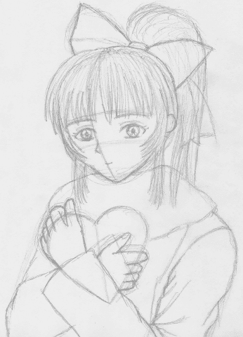 描きたいものを考えます〜。 で、どんな絵にしよかな〜と ラフを描きます。 今回は、チョコを大切そうに 持ってどきどきしてるところとか かわいいかなと思って こんな感じにしました。 私は、A4のコピー用紙に シャーペンで描きます。 だって、このときの絵って ほとんど残らないし… 紙にイラスト描いたこと無いんで わからないんです(笑) ちなみに私は、レベル低いので 他の人のイラストとか、 雑誌とかを参考にします。 |