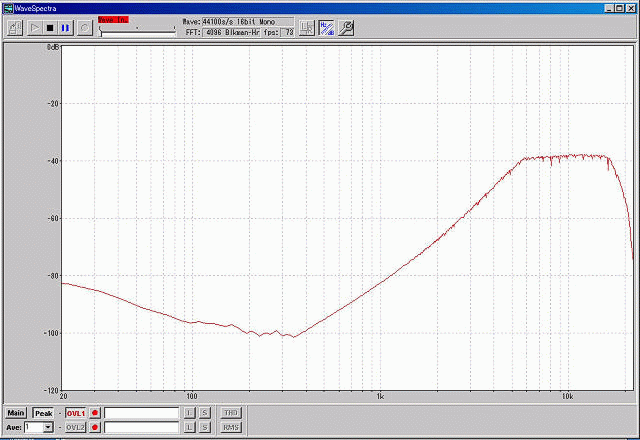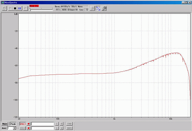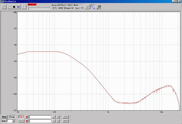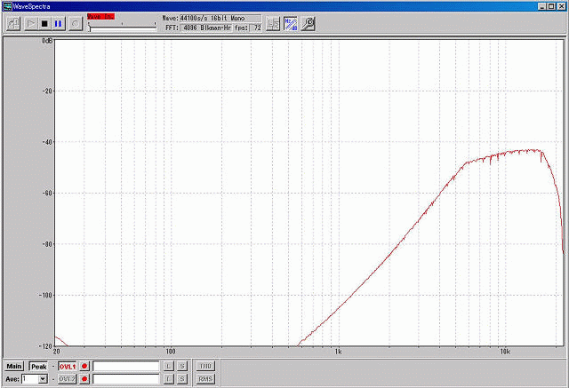 以下に各バンド毎のフィルタ特性とバンド1〜3のひずみ除去クリッピング特性・バンド4のBPFフィルタ特性(クリッピングは行っていないので、リミッティング時のひずみを軽減させている)、バンド5のひずみ除去クリッピング特性・バンド6のクリッピング特性を示します。テスト用ソースは帯域5Hz〜22KHzまで記録されている正弦波(CDDAソース)のスイープ信号です。