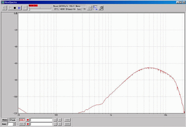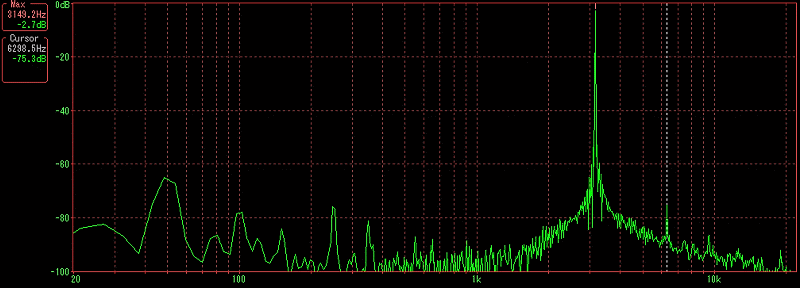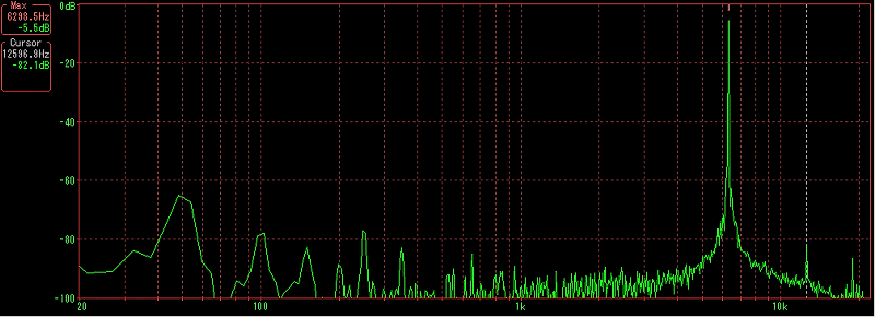 基本波6.3KHz -5.5dBで2次高調波レベルは −82dB 3次高調波レベルは-87dB |