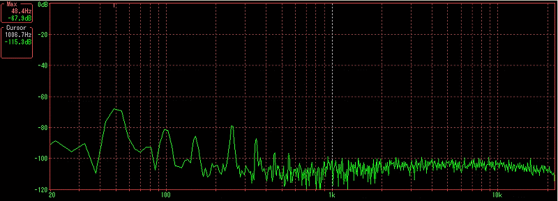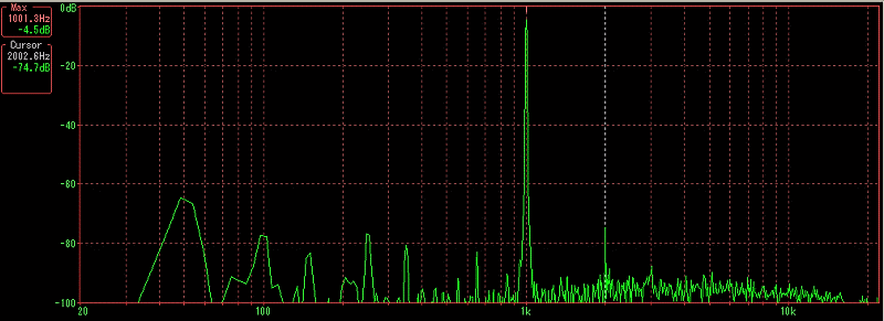 基本波1KHz-2.7dBで2次高調波レベルは-75dB 3次高調波レベルは-90dB |