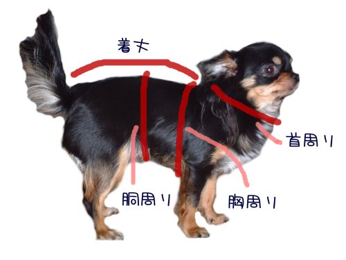 ※お洋服の場合、性別の記載が無い場合は、“女の子用”としてお作りします。 男の子の場合でも、前丈をあまり短くする必要の無い場合はお教えください。 ※ヌードサイズはサイズ選びの間違い防止にもなりますので、 必ずご記入をお願いします。 こちらのページの一番下の、サイズの測り方をご覧ください。 ◆個人での運営のため、HP上で「sold out」を表示するまでに、時間のズレが 生じる場合がございます。 ◆商品は個人が家庭用のミシンで製作しておりますので、既製品のようには いきませんが、1点1点心を込めてお作りしております。 その分リーズナブルな価格での提供を心がけておりますので、 その点をご理解の上、ノークレーム、ノーリターンでお願いいたします。 こちらの発送ミス、商品にあきらかな破損があった場合は、速やかに対応いたしますので、 商品到着後1週間以内にご連絡ください。 お客様のご都合によるキャンセル・変更等には申し訳ございませんが、 お応えできかねますので、よろしくお願いしますm(_ _)m ◆お洋服の表示サイズは、出来上がりサイズです。 ヌードサイズではありませんので、ワンちゃんの毛ぶきや、 お洋服の伸縮性等により、ゆとりをもってお選びください。 サイズに不安がある場合は、ワンちゃんの首周り、着丈、胸周り(胸の一番太いサイズ)を 書き添えて、メールにてご相談ください。 お手持ちのお洋服を測られて、一番近いサイズをお選びいただくのも一つの目安です。 ◆商品は1点1点手作りの為、サイズに若干の誤差がでる場合がありますのでご了承ください。 ◆お洗濯は、優しく手洗いをおススメします。 ※特にモチーフ(飾り)類が付いているお洋服は、洗濯機や乾燥機はお避けください。 恐れ入りますが、トラブルを避けるためにもご注文される場合は、 以上の点をご了承いたきました上でお願いいたします。 【送料・配送方法】 ◆送料は基本的にお客様のご負担となります。 「くうのページ」、「のんママのページ」では送料が異なります。 それぞれに指定する送料をご負担ください。 商品の発送方法はクロネコヤマトのメール便か定形外郵便となります。 どちらも配送の際の事故、ポストからの盗難等、万が一の場合がありましても、 申し訳ございませんが私どもでは補償できかねますm(_ _)m 郵便ポストが小さくて全て入りきらない場合は盗難の可能性も大です! ご心配は場合は直接受け取れる、宅急便、ゆうパック、エクスパック、配達証明付き等 をご指定ください。 この場合の送料も、お客様の実費負担となりますので、ご了承ください。 【お洋服サイズについて】 ◆当ショップの表記サイズは、すべて“出来上がりサイズ”です。 お洋服のご注文の際にはワンちゃんの“ヌードサイズ”のご記入をお願いします。 綿生地のワンピ等伸縮性のないお洋服につきましては、胴回りサイズもお教えください。 サイズの測り方は、メジャーで“キツすぎず、緩めず”という感じで 測っていただくのがコツです★ ●首周り・・・首の一番細いところ。 ●着 丈・・・首の付け根から、シッポの付け根まで。 ●胸周り・・・前足の下あたりの、一番太い周囲です。 ●胴周り・・・肋骨の一番下あたりです。 (お腹の一番細い場所ではありません。一番細い箇所のサイズを記載されると、 ワンピ等の胴がキツクなってしまう場合があります) ![]()