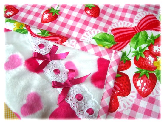 ◆短めの可愛いハートのファー&イチゴチェック。