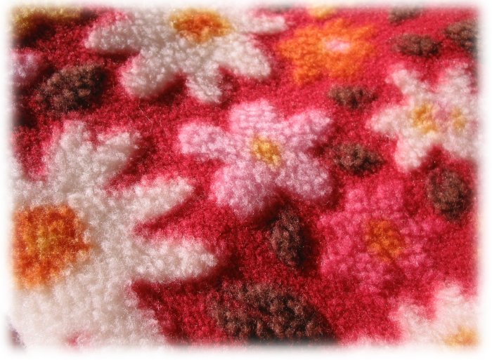 ●赤地にカラフルなお花模様のふわふわのボアニットです♪