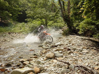 | まるで沢を下っている様な感じですが、 れっきとした林道であり、県道黒磯田島線でもあります。 登山道を走るよりきついかも? |