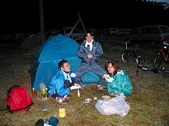 さて、あずま屋にサイトを設営して一息つくと、さっそく温泉と釣りです。 (photo by Jn)