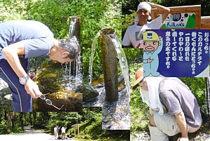 カルデラ博物館HPのカルデラ地図で見た天涯水という湧水も、愉快な看板が目印になりじきに見つかり順調です。