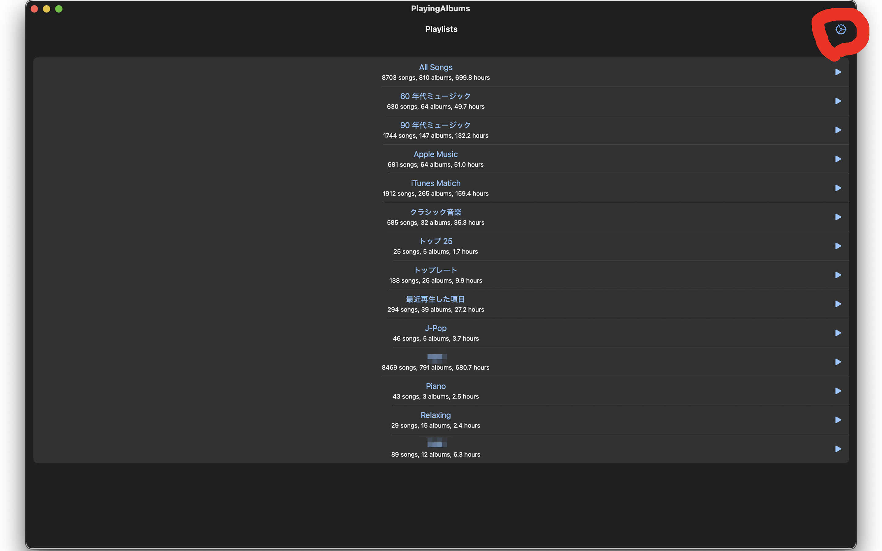 macOS Catalina 10.15に対応。しかし,ライブラリを読み込むために,Musicアプリケーションから手動でライブラリを書き出してPlayingAlbumsで読み込む必要がある。