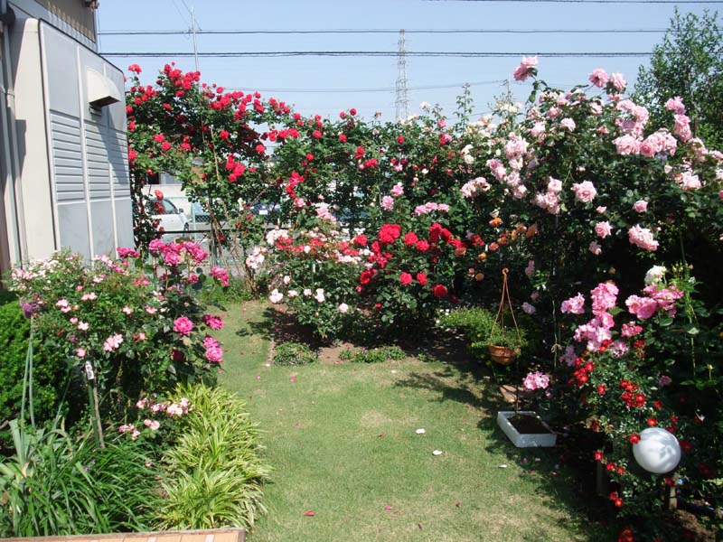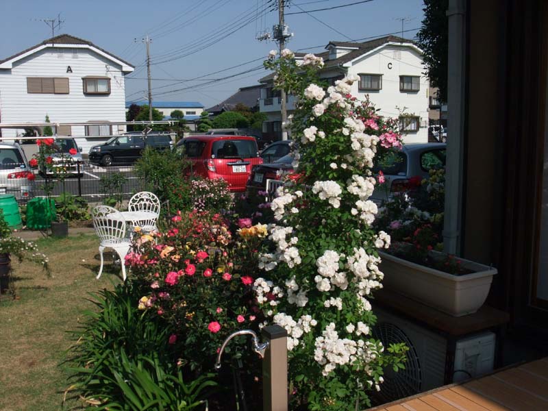 庭がずいぶん華やかになりました。5/11から二日間で随分花が開きました。特にフェンスのつるの開花はあっという間です。 |
