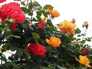 フェンスのスカーレットクィーンエリザベス(CL,赤)とサハラ98(CL,黄) |