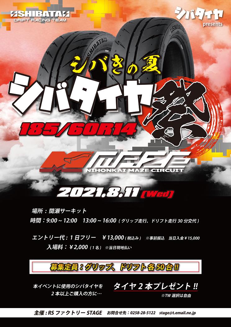 で、今回。185スペシャル仕様の試作を100本テストしてくれ!というメーカーの希望を一度に応えるべく「みんなに使ってもらいましょう!」とシバタイヤの大盤振る舞い(凄)当日はトラックにタイヤ100本以上とチェンジャーを持ち込んで新しいシバタイヤをエントラント達がテストする!エントラント全てがテストドライバー♪ドリフト&グリップでガンガン使って今回のテーマである「シバきの夏!」にのっとりシバき倒しましょうっ!目標全部丸坊主!で気合入れてエントリーください!