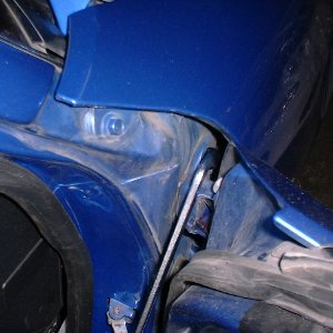 フェンダーを外す事なくヒンジのボルトが緩められます。
