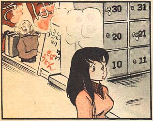 向かって左の柱の陰に縦2列のコインロッカーがあるのが、この写真では確認できる。 また、写真店を1軒挟んだ向こう側に見えるのが、五代くんのばあちゃん初登場の舞台となった立ち食いそば屋のモデル、「狭山そば」である。が、すでに閉店したらしい。(泣)