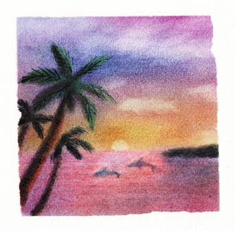 鮮やか色の南国の夕暮れ、
