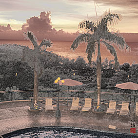 ホテルのプールからの美しい夕景 どこかレトロな色彩が旅情を誘います。 HAL‐KODAさん、本当にありがとうございましたm(__)m