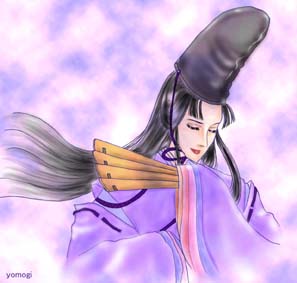薄闇に白き狩衣の