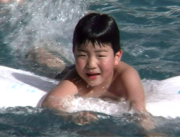 | プールで大喜びの ようすけくんとともひろくん ようすけくんは足の届かない ところでも、全然平気 まわりが心配心配します |