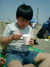 葛西海浜公園に行ってきました。 おなじみ自転車で30分の葛西臨海公園から海に出たところです。 西なぎさと東なぎさの2つの広い砂浜からなる公園で、西なぎさでは、 東京湾の水平線をながめたり、砂遊び、磯遊びが楽しめます。 東なぎさは、野鳥や魚が安心して住めるように、人が入れない自然保護地区に なっています。(ホームページからの引用) いえ、特に潮干狩りに行ったわけじゃなく、天気の良いゴールデンウイークの とある一日の昼頃ににふらっと行ったんです。 そしたらみんな潮干狩りしていて、そのまま我が家も参加となりました。 だから道具も何にもなし。それでも結構大きい貝が採れました。 子供達は大喜び!! どうも採れた貝は「シオフキ」と言う貝のようです。(こちら参照) それと、早朝に撒いているのかと思ったんですが、上のHPで秋でも 採れるってことは自然にいるのかな・・・。 入場無料、交通費タダ、お土産付き の3拍子揃ったいいとこ見つけました。