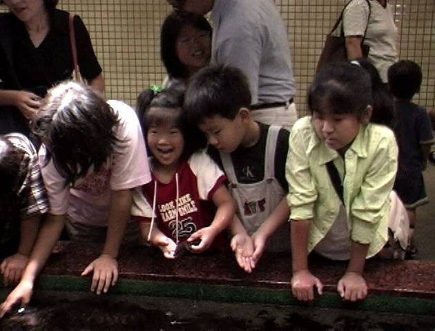 名古屋港水族館で見かけた アベック 背景は南極探検船「ふじ」 |