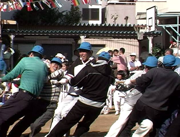 | これも名物競技 クラス対抗綱引き なんと優勝! 景品は スーパードライ 3リットル さすがに一人じゃ飲めません |