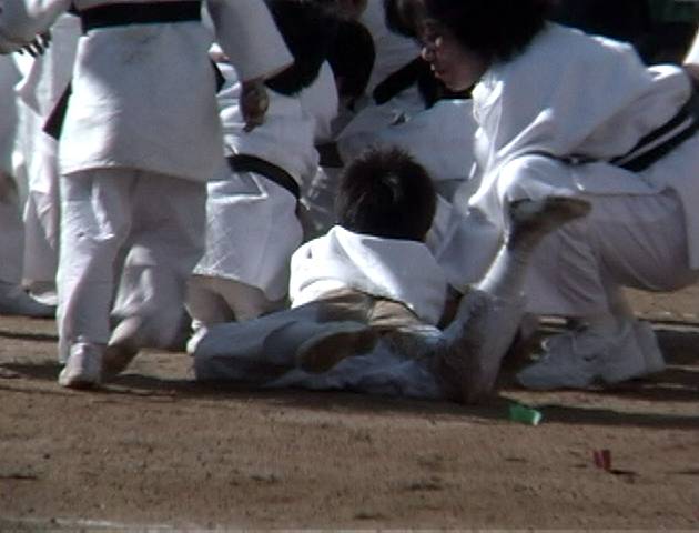 | うつぶせの体勢からかっこよくスタート けど綱と一緒に引きずられて行きました・・・ |