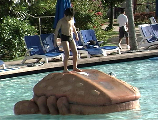 この春からバイク通勤しています。 いきなりエンジンがかからなくなったり いろいろとトラブルがありましたが、 なんとか今は調子よく走っています。 往復で100km以上。 毎日気分はツーリングです。 −1日おきにスタンドで「ガソリン満タン」! 長距離走ってるなと 実感します− (バイクについては写真館・ツーリングで紹介しています) 一時期全く行ってなかったんですが、先月に引き続き今月も 行ってきました。 先月は同年代又は年上の人とだったんで 特に選曲に困ることなく歌えたんですが、今月は20代の中に 35歳が紛れ込んでしまいました。 同年代の皆さん、こんな時どんな曲歌ってますか? ラルクや山崎、開き直って黄色5や青色7、はたまたアリスや たくろう、無難なところでサザンとか・・・ いつ頃の曲を入れるかとても悩んでしまいます。 (といってもその場では、たいがい酔っぱらってますから そんなに深く考えてませんが) ![]() トップページにも書きましたが、 グアムは日本人ばかりじゃありません それが実感できるのが、ここ子供用 プール。 大人はそんなに大きな声でしゃべりませんが、子供用プールでは 子供同士の大きな話し声、親の注意する声等 大きな声が 飛び交います。 ここでは感覚的に「日本語」「中国語」「朝鮮語」がそれぞれ 1/3ずつのような感じです。 ともひろくんと遊んでいると、同じくらいの年の子が、かたことの中国語か朝鮮語で 話しかけてきて、子供同士わかって いるのかどうか「?」ですが、アーアー と話(?)をしています。 国境のない世界でした。 |