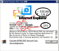 Internet Explorerを起動し[ヘルプ]→[バージョン情報]で確認できます。