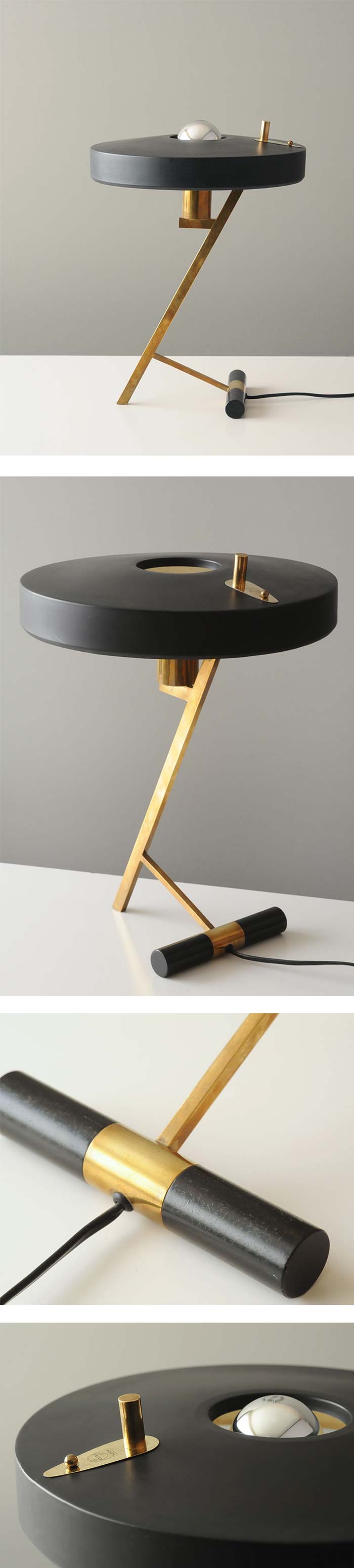 このランプはユニークな形から「Z」「Zデスクランプ 」などと呼ばれ、いまだに人気は衰えません。正式な名称はDecora。60年代にシェードのデザインが変わり、このフォルムが登場しました。エッジの効いた直線を基調とするゴールドの骨格の上に、UFO型フォルムの黒いランプシェードが載った姿は壮観です。