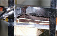 中がこのようになっているなんて、こういう時じゃないとなかなか見られるもんじゃございません。ロッドに埋める木が当たらない様に、溝を付けてタイトボンドで接着&圧着です。放置している間に、両サイドの角棒も作っておきましょ。