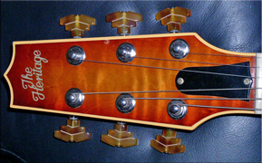 Heritageは、元Gibsonカラマズー工場の職人さん達がシコシコやっている所です。今現在、その職人さん達が居るかどうかは分かりません。これは、本家のGibsonからクレーム?が付く前のボディ・シェイプを持つ一本です。材は本当に良い物を使用しているようですし、作りも非常に丁寧。マイクは元々シャーラーの58モデルが付いていましたが、今はLollar社のインペリアルのロウワインドに。バックにはストラトのようにコンターが入っています。ちなみにナット・フレット・ピックガード以外は全て交換してしまいました。このギターは割合に重いのですが、バランスがよい為かさほど気になりません。このメーカー、現行モデルの形はダサイ?けど、Heritageはお薦めです。ただし、ご多分に漏れずUSA製は個体差がありますので慎重に。ダブルシリアルで034。