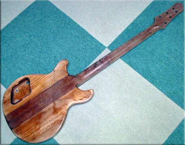 この1本は師匠から頂いたギターです。ブビンガのスルーネック(ブックマッチ)・フィギュアの入った桜のトップサイド・ライトアッシュのバック。ジャンク状態?ですが然るべき処置を施せば、素晴らしいギターになる事間違いなし!ですね。でもって、直しました→このギターのページ