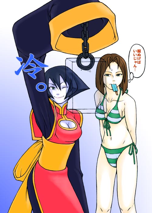 夏コミに一応2サークル様に絵を描いたので、直にお会いするならと描いたものです。 この直前にレイレイ教さんとどっちの絵が女の人が描いたっぽいか(←?)って 口論になったので、そのあたりを意識して描きましたが、なにぶん時間が・・・; 「ナルト」を見たせいかレイレイが大蛇丸っぽく見えてしょうがなかったです;