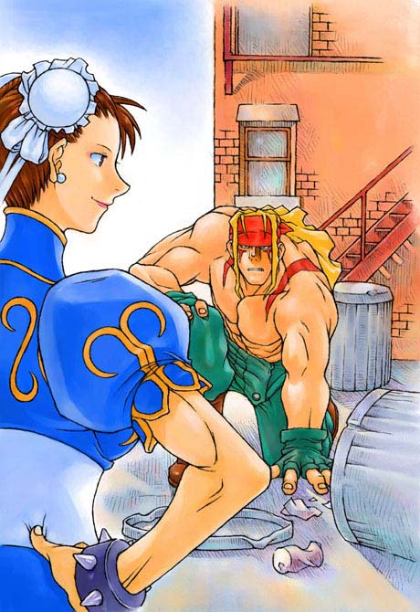 はじめて春麗さんを描きました。 テーマは「アレックスの災難」といったところでしょうか。 あんまりお気に入りじゃないんですが、99冬コミご苦労様。 「水彩画ですか」といってくれた女性の方、 水彩画じゃないんです。すみません。
