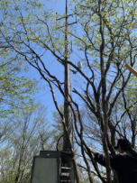 樹木に接触しかけている場所の確認を行いました。あわせて、作業当日の登頂前には、遠隔で
