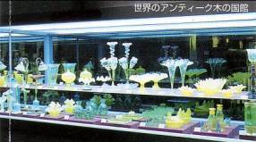 世界の古美術と出会う世界のアンティーク木の国館 昭和63(1988)年に開設された飛騨高山博覧会のメインパビリオンを移築した館内には、リビングボードや木製家具、大理石の作品、陶磁器、銅製品など、世界各国のアンティーク約2000点が展示されている。なかでも珍しいのは、ヨーロッパの貴族が愛用していたという40点のウランガラス。紫外線を当てると、まるで宝石のような光を放っている。 |