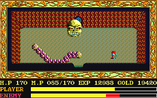 そして、遂に神殿入り口付近の扉を開け、ボスキャラと対決だ。コイツは、正面から「ファイヤー」を撃ちこめばダメージを与えられるので、