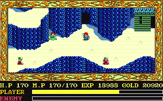 戻ると溶岩の世界で助けたタルフ君だった。彼によると、どうやら怪しいヤツがアドルの後をつけて神殿に入っているらしい。