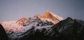 朝5時過ぎ、目が覚める。外は真っ暗である。空には星も見えない。今日は、モルゲンロードは無理かと思っていたが、歯磨き、用足し等をしたりしている内に、雲が切れてくる。 アンナプルナサウスが、ヒュニチュリが赤く燃える。綺麗な時はもっと赤く染まるのだろうが、十分な美しさである。ただ、マチャプチャレは、見る方向の関係で余り赤く染まることは無いようだ。