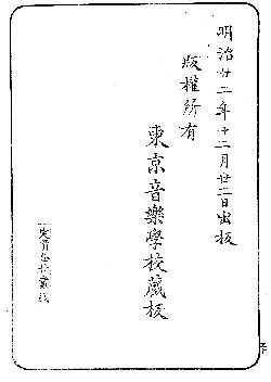 【『筝曲集』と「櫻」について】 「櫻」は、明治二十一年(1888年)十月二十八日印刷発行の、『筝曲集』文部省音樂取調掛撰の第二曲として掲載されて、普及しました。 下図は『箏曲集』第六版の編纂者は文部省、發行者は東京音樂學校。印刷兼發賣者は大日本圖書株式會社。この本には英文タイトル「Collection of Japanese Koto Music」、英語序文、全曲楽譜がありました。 [註]『箏曲集』初版は、文部省音樂取調掛撰を(東京音樂學校が手続きをして)、文部省編輯局が発行したもの。定価は並製本は38銭、上製本は75銭だった。明治二十九年一月三十一日、入札の結果、文部省は高等師範学校附属音楽学校発行の図書について大日本図書会社に発売を委託した。 そこで、再版・三版は編纂者は文部省、發行者は高等師範學校附属音樂學校、印刷兼發賣者は大日本圖書株式會社。 四版(明治三十七年一月四日)以降は、編纂者は文部省、發行者は東京音樂學校、印刷兼發賣者は大日本圖書株式會社。 第六版は並製55銭で、これを改訂した『箏曲集』第二編(大正三年二月十一日)では、著作者は東京音樂學校、印刷兼發賣者は大日本圖書株式會社宮川保全、發行所は大日本圖書株式會社、定価90銭。(資料は「なっとく」愛読者の方より)