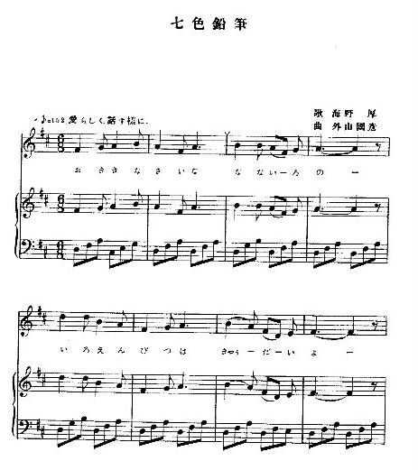 ●鮎川哲也著『唱歌のふるさと 花』音楽之友社に、“≪七色鉛筆≫には曲がつかなかったらしいが”と書いてあるのは間違いです。外山國彦(とやまくにひこ)が作曲しています。厚が自分達七人兄妹を歌ったものでしょう。