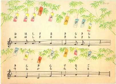 昔から、毎年七月七日には、一年に一回だけ、織姫が天の川を渡って牛飼いに会いに行くという言い伝えがあります。それで、この日に竹の葉に飾りをつけて、お祭りをしました。七夕は、江戸幕府が年中行事に取り入れてから、寺子屋の習字の手習いと関連して庶民の間に普及しました。当時は、芋の葉の露ですった墨で短冊に願い事を書いたそうです。 私、池田小百合が主宰する童謡の会では毎年七月例会で「たなばたさま」を歌っています。 歌のタイトルは出版物により「たなばたさま」と「たなばた」があります。なぜでしょうか。調べてみることにしました。 まず、教科書を見ましょう。 【初出のタイトルは「たなばたさま」】 昭和十六年三月発行の『うたのほん下』国民学校初等科第二学年用に掲載されました。発表の時のタイトルは「たなばたさま」でした。他の曲同様、作詞・作曲者名は書いてありません。