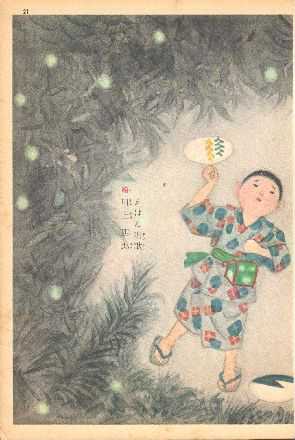 「谷川の水」(佐賀) 鹿島市古枝の唄。「呉りゅう」は「呉れてやろう」の意。佐賀市内では「ホ、ホ、ほーたっじょ、濠(ほい)の水くりゅうか、流れ川の水くりゅう、ホ、ホ、ほーたっじょ」とも歌う。 「螢さ」(秋田)“「ほうほう、螢来い、上の水コ、んめゃくねぁ、下の水コ、んめあじょ、樋コさげて下りて来い。―秋田」という類歌は方言そのままだけに、一層に郷土性が色濃い。「樽コ」「水コ」の「コ」は東北地方に共通した物の愛称である。” 藪田義雄の解説抜粋。 「じんじん」(沖縄)首里附近の唄。ジンジンは螢。八重山では単に「あがれよジンジン さがれよジンジン」と唄う。歌意「螢よ螢よ、酒屋の水飲んで、落ちろよ螢、さがれよ螢」。 文章を使用する場合は・・・《著作権についてのお願い》 ≪著者・池田小百合≫ |