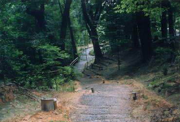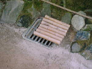 京大を過ぎてしばらくすると、慈照寺についた。ここも人が多い。人込みにまぎれつつ拝観。鹿苑寺と対にして考えられがちだが全然別物。こっちの方が十倍いい。「マムシ注意」とか危険な事が書いてあったりして恐いが。落ち着いた感じで、(排水溝に粋なはからいがあったり)人さえ居なければいい所なんだろうなと思った。十五分ほど見物していたら急に雨が降ってきたので撤退。清水(きよみず)も行きたかったがあきらめる。ゲリラに襲われたらやだしね。