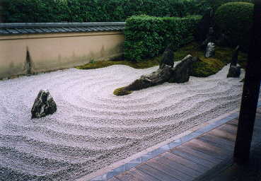 八時半に宿を出て、とりあえずたくさん禅庭のある大徳寺に行く。朝九時に行ったので人影はまだまばら。この大徳寺。入場するだけならただなのだが、庭一つ一つ別々に拝観料を取りやがるステキな寺だ。とりあえず大仙院、瑞峰院 、竜源院という三つの塔頭にある庭を拝観。最初に瑞峰院に行ったのですが、ここはキリシタン大名であった大友宗麟が作ったところだそうで、庭の石が十字架型に並んでたりして楽しい。三つの塔頭の庭を見ていたら一時間経過。次の寺に行く。